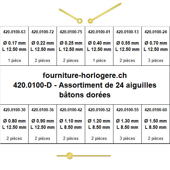 -Aiguilles bâtons dorées assortiment de 24 pièces (D)