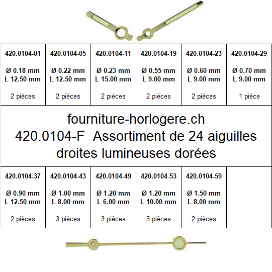 -Aiguilles droites lumineuses dorées assortiment de 24 pièces (F)