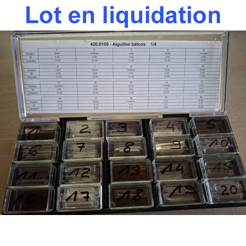Lot 1/4 de 138 aiguilles bâtons avec boîtes de rangement