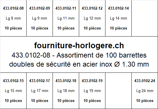Assortiment de 100 barrettes doubles de sécurité ac inox Ø 1.30 mm