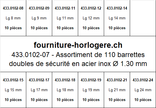 Assortiment de 110 barrettes doubles de sécurité ac inox Ø 1.30 mm