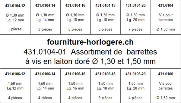 Assortiment de 48 barettes à vis en laiton doré Ø 1.30 mm