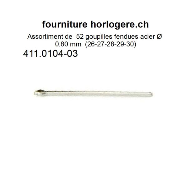 Assortiment de 52 goupilles fendues acier Ø 0.80 mm (26-27-28-29-30 mm)