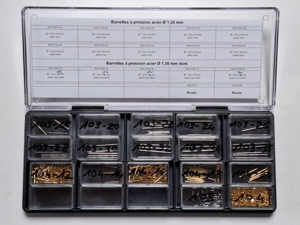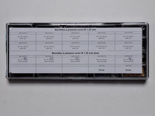 Assortiment de barrettes à pression acier inox et doré Ø 1.30 mm ( 260 pièces)