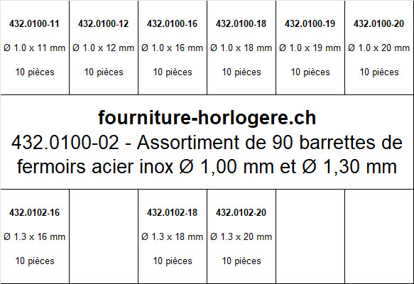 Assortiment de 90 barrettes de fermoirs ac inox Ø 1,00 mm et Ø 1,30 mm