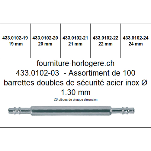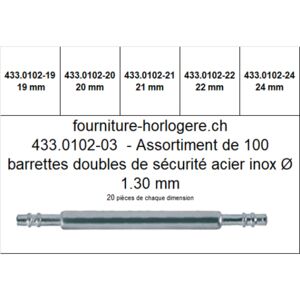 Assortiment de 100 barrettes doubles de sécurité ac inox Ø 1.30 mm - Ø A 0.75 mm