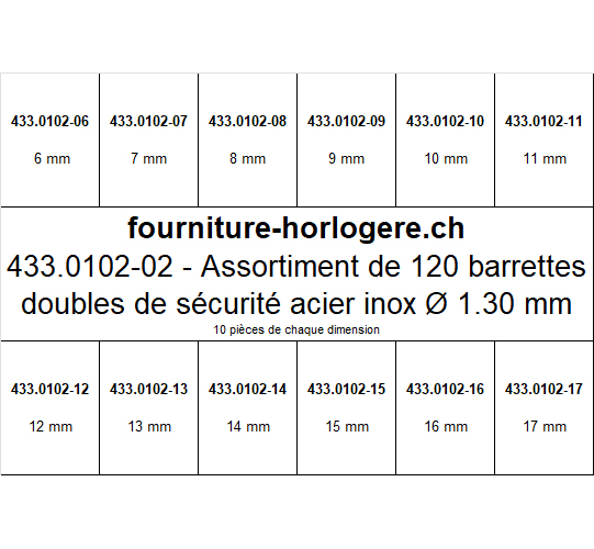 Assortiment de 120 barrettes doubles de sécurité ac inox Ø 1.30 mm
