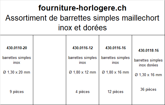 Assortiment de barrettes simple maillechort Ø 1,30 et 1,80 mm ( 61 pièces)