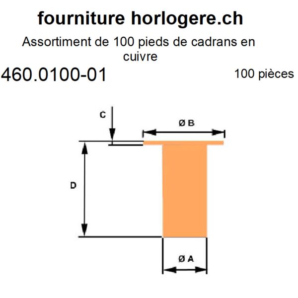 Assortiment de 100 pieds de cadrans en cuivre emballé en sachet