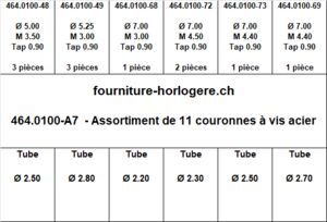 Assortiment de 11 couronnes à vis avec tube et joint Tap 0.90 mm acier