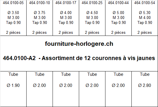 Assortiment de 12 couronnes à vis avec tube et joint Tap 0.90 mm jaunes