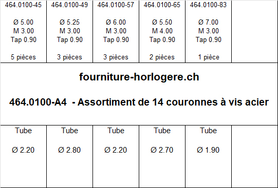 Assortiment de 14 couronnes à vis avec tube et joint Tap 0.90 mm acier