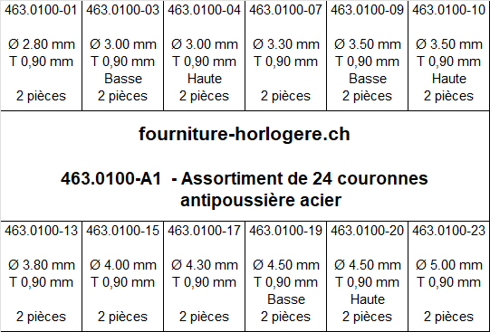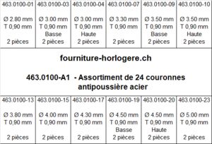 Assortiment de 24 couronnes antipoussière acier inox