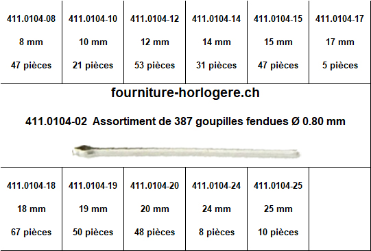 Assortiment de 387 goupilles fendues acier Ø 0.80 mm