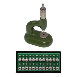 Potence à vis micrométrique avec assortiment de 24 poussoirs à pompe et 24 tasseaux pour pierres