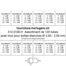 Assortiment de 120 tubes acier inoxydable pour boîtes étanches Ø 3.00-3.50 mm (10 pièces de chaque)