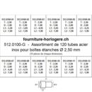 Assortiment de 120 tubes acier inoxydable pour boîtes étanches Ø 2.50 mm (10 pièces de chaque)